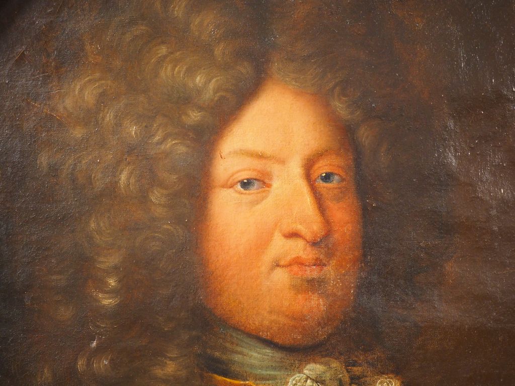 Ecole française XIXème. 'Portrait du grand dauphin en médaillon'. Huile sur toile. Dim. : 74 x 60 cm. (restaurations)
