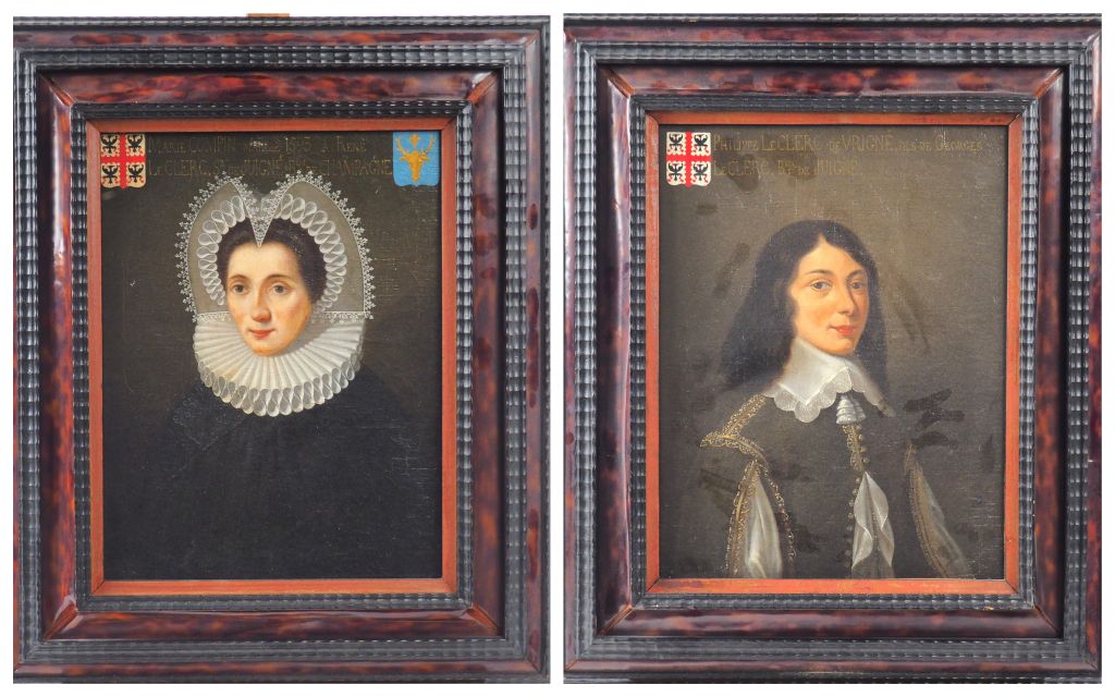 Ecole française XVIIème "Paire de portraits, Pillippe Le Clerc de Vigne et Marie Compin" Huiles sur toile (restaurées et réentoilées)