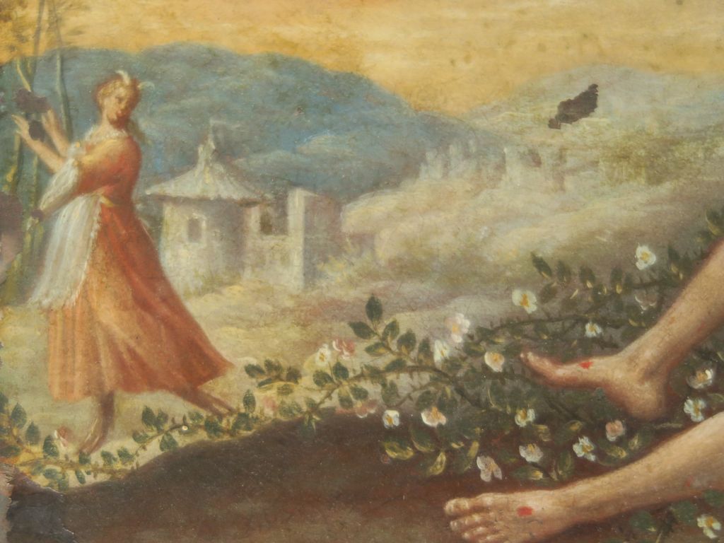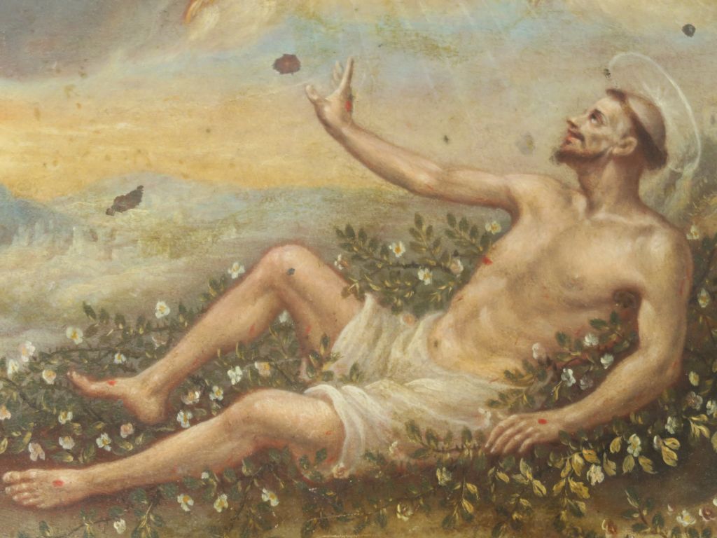 Ecole française XVIIème "Saint aux stigmates" Huile sur cuivre. 23,5 x 29 cm (accidents)