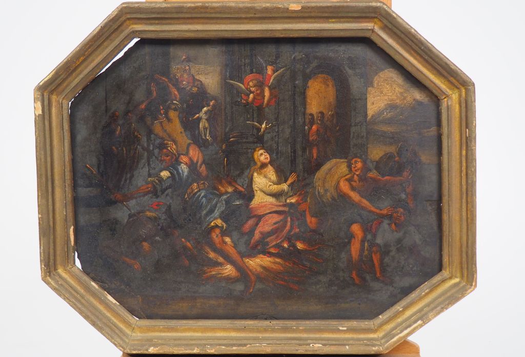 Lot de Ecole française XVIIème "Scène religieuse" Peinture sur ardoise 30 x au prix de 500 à 600 € en vente aux enchères par l'hôtel des ventes Primardeco