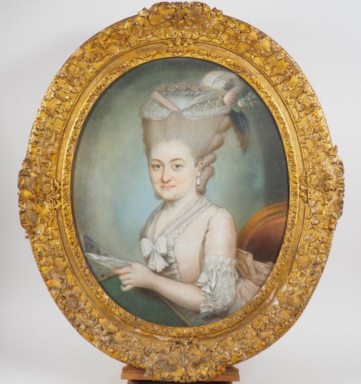 Ecole française XVIIIème. "Portrait de dame à la lecture". Pastel. Dim. (à vue) : 60 x 50 cm. (Fente, usures).