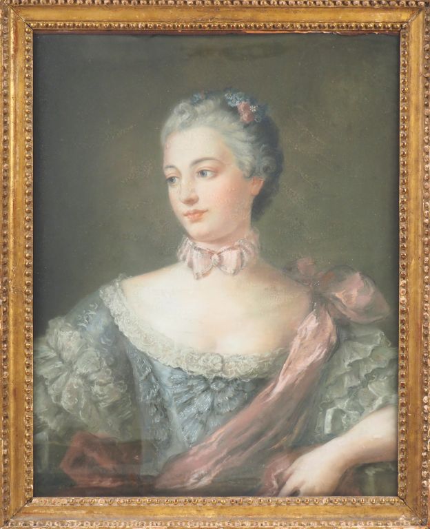 Ecole française XVIIIème. "Portrait de jeune fille au nœud de ruban". Pastel. Dim. 70 x 56 cm.