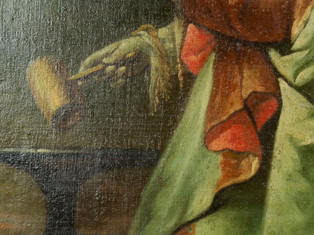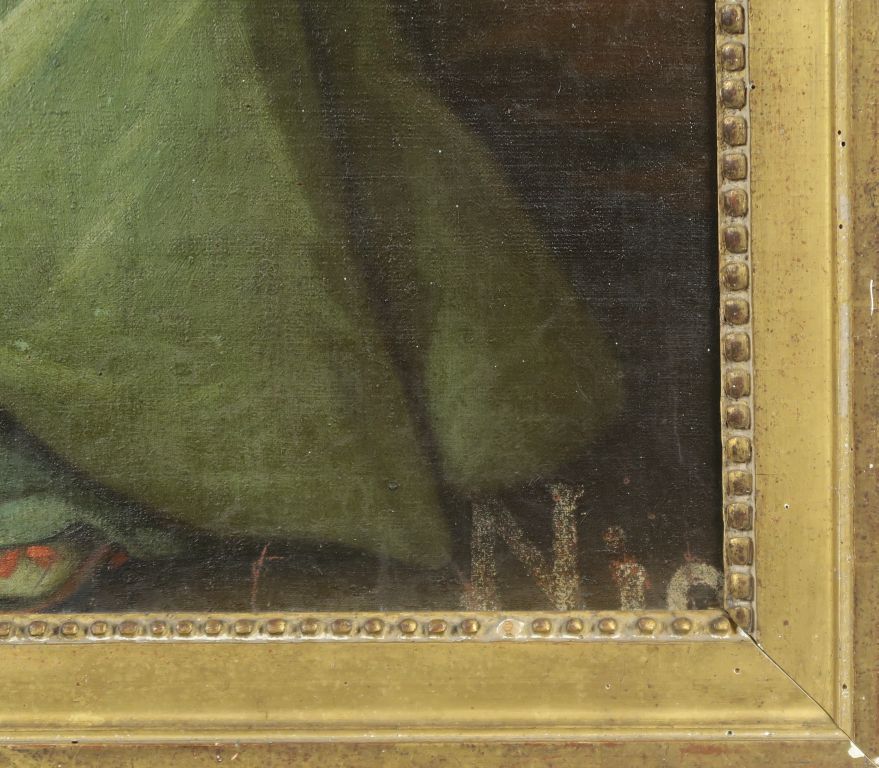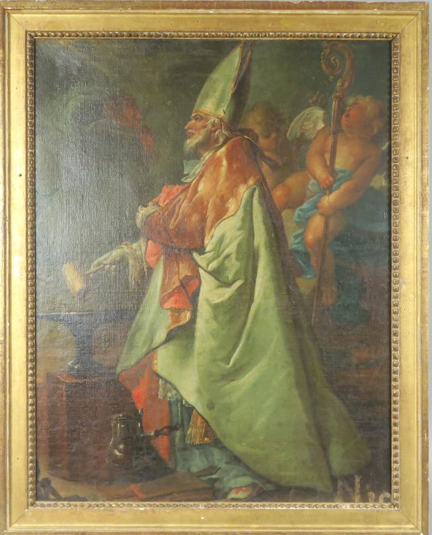 Ecole française XVIIIème. "Saint Eloi, patron des orfèvres". Huile sur toile. Double face. Dim. : 76,5 x 59,5 cm. (accidents et restaurations)