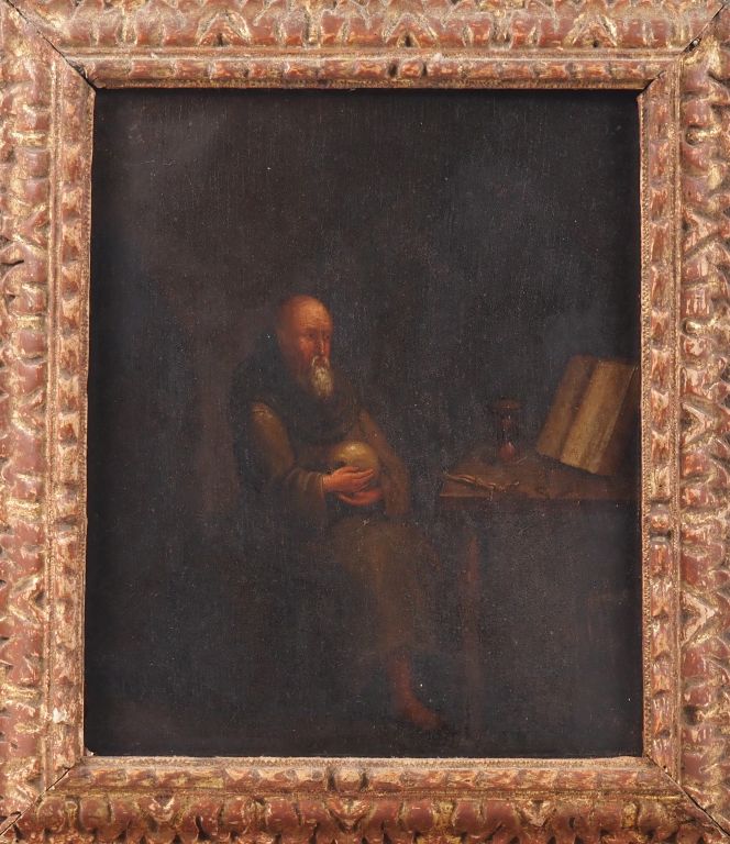 Ecole française XVIIIème. "Saint Jérome" Huile sur panneau. Dim. 27 x 23 cm. (Traces d'insectes sur le panneau).