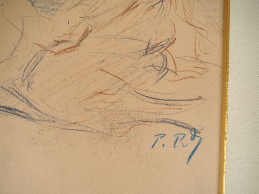 Ecole française XXème. "Jeune mère et son enfant" et "bambins jouant". Dessins monogrammés P.RQ. Dim. 36 x 26 cm.