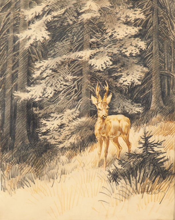 Lot de Ecole française Xxème. "Les cerfs". 3 dessins signés. Dim. 42 x 34 cm. au prix de à € en vente aux enchères par l'hôtel des ventes Primardeco