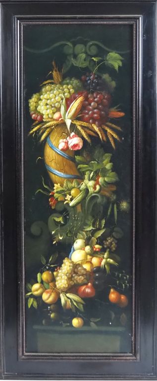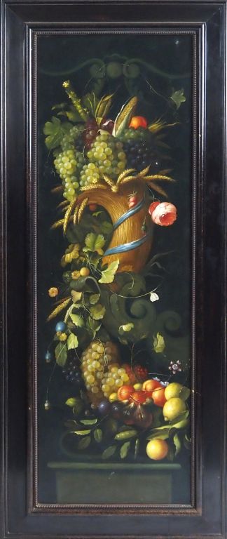 Ecole française XXème. "paire de natures mortes dans le gout du XVIIème" Huiles sur toiles Dim. 180 x 60 cm
