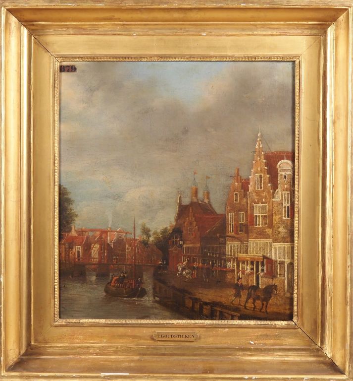 Ecole hollandaise du XVIIème "Vue d'Amsterdam" Huile sur toile Dim. 63,5 x 56 cm (restaurations anciennes) Expert : Cabinet Turquin - Stéphane Pinta