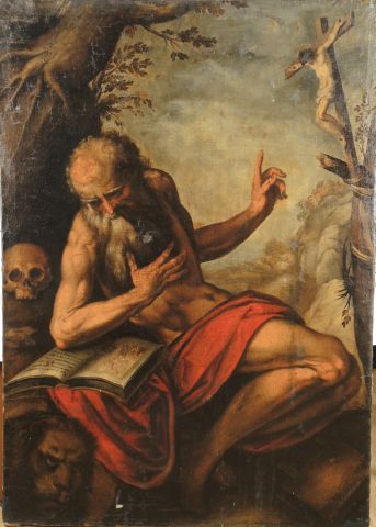 Ecole italienne XVIIe "Saint Jérome" Huile sur toile. Dim. 129 x 93 ...