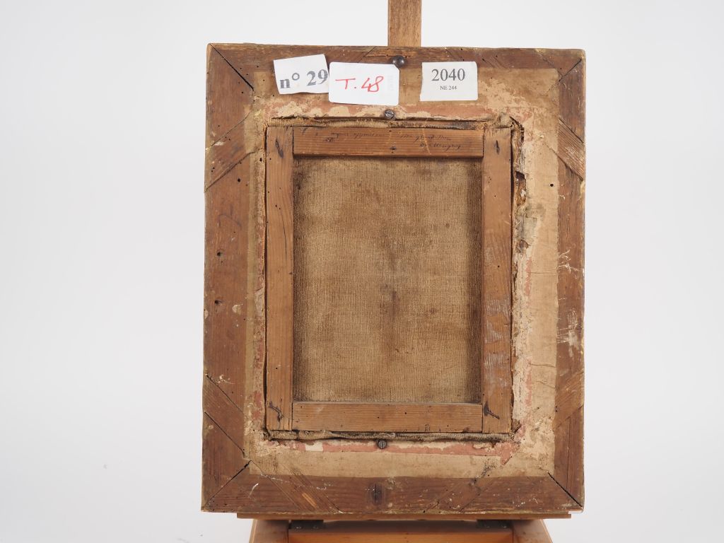 Ecole XVIIème. "Sainte femme" Huile sur toile Dim. 28,5 x 23 cm dans un cadre XVIIIème en bois et stuc doré à décor de fleurs