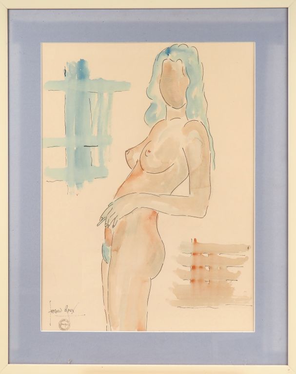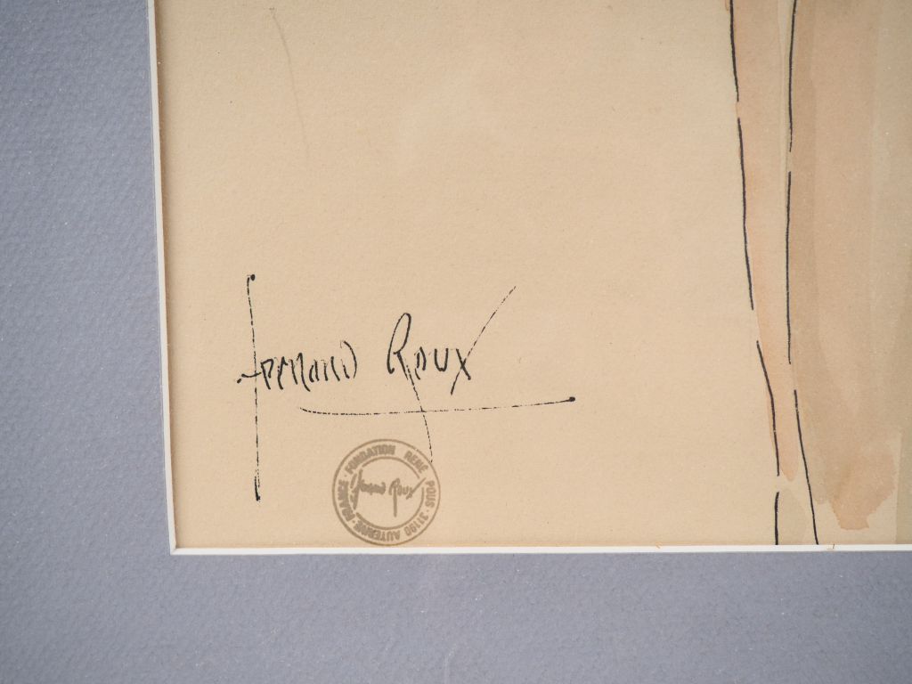 Lot de Fernand ROUX. "Pause cigarette". Aquarelle, signée en bas à gauche. Di au prix de 80 à 120 € en vente aux enchères par l'hôtel des ventes Primardeco