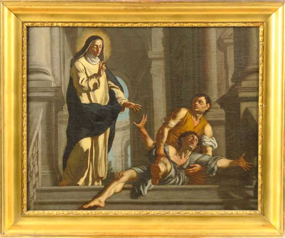 Francesco NARICI (1719 - 1785). "Sainte Claire et les paralytiques" Toile Hauteur : 51 cm Largeur : 63 cm Restaurations anciennes Expert : Cabinet Turquin - Stéphane Pinta