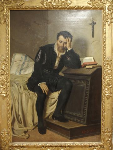 G. LIGI ,'Le prisonnier'. Huile sur toile, signée en bas à droite et.datée 1870. 172x115cm (accidents)