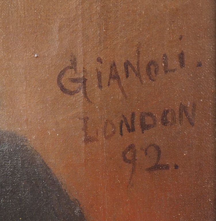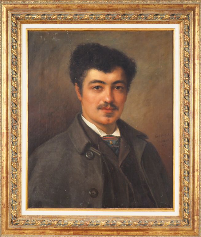 GIANOLI. "Portrait d'homme à la moustache". Huile sur toile, signée à droite, datée 92 et située à Londres. Dim. 61 x 50,5 cm.