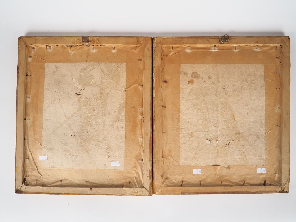 Paire de gravures en noir fin XVIIIème. "Diderot et d'Alembert" dans leur cadre baguette dorée.