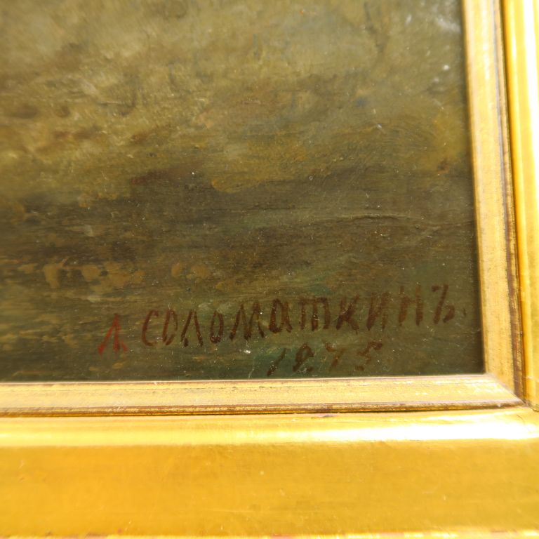 SOLOMATKIN. "Procession au crépuscule". Huile sur toile. Signée en bas à droite. Dim. 48,5 x 60 cm
