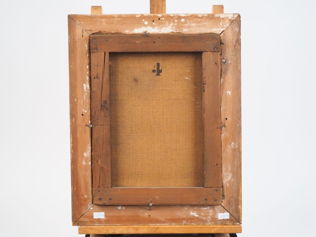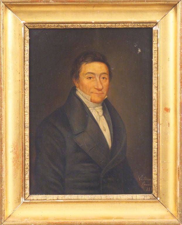 Victorine CAVALIE. "Portrait d'homme au jabot". Huile sur toile, signée en bas à droite et datée 1872. Dim. 33 x 24,5 cm. (Réentoilage).