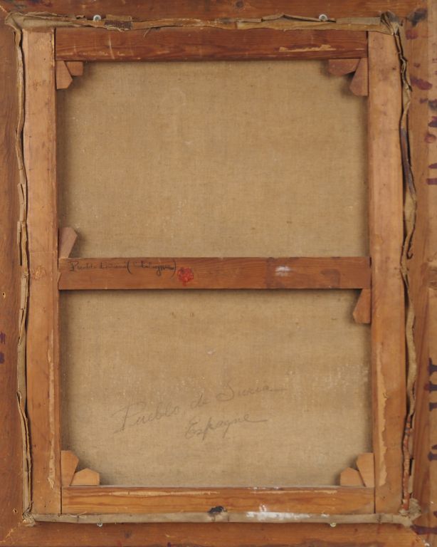 A. MARTIN. "Conversation dans le pueblo de Suria en Catalogne" Pastel, signé en bas à droite Dim. 65,5 x 50 cù