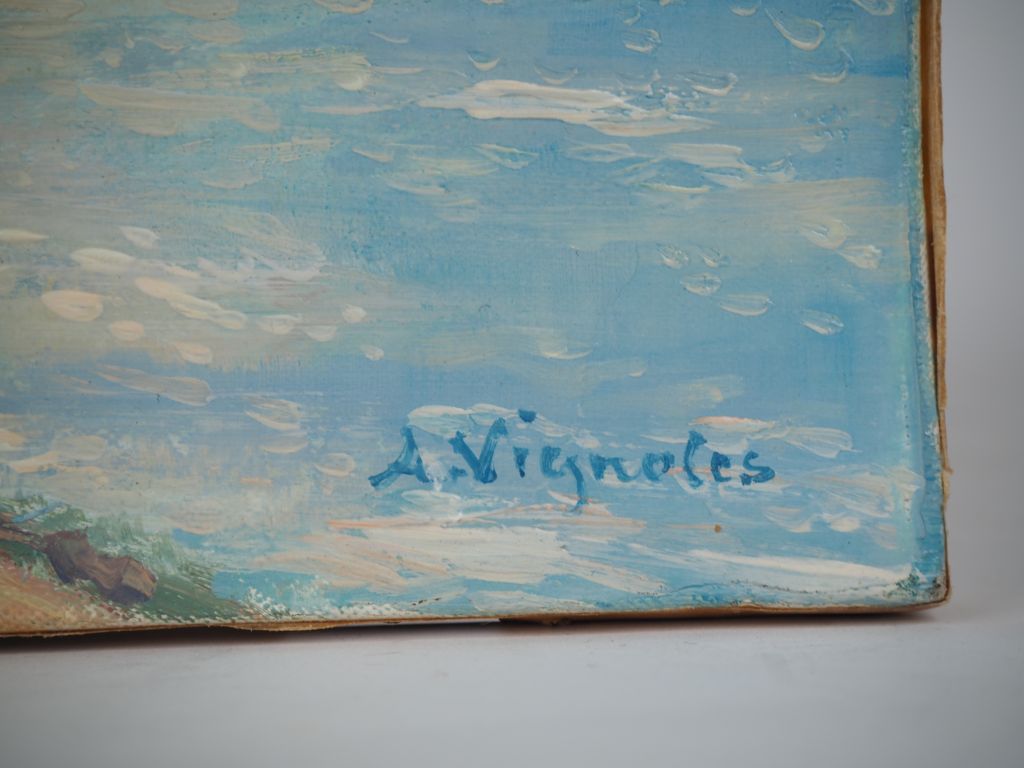 A. VIGNOLES. "Sorrento à contre jour" Huile sur toile, signée en bas à droite. Dim. 27,5 x 35 cim.