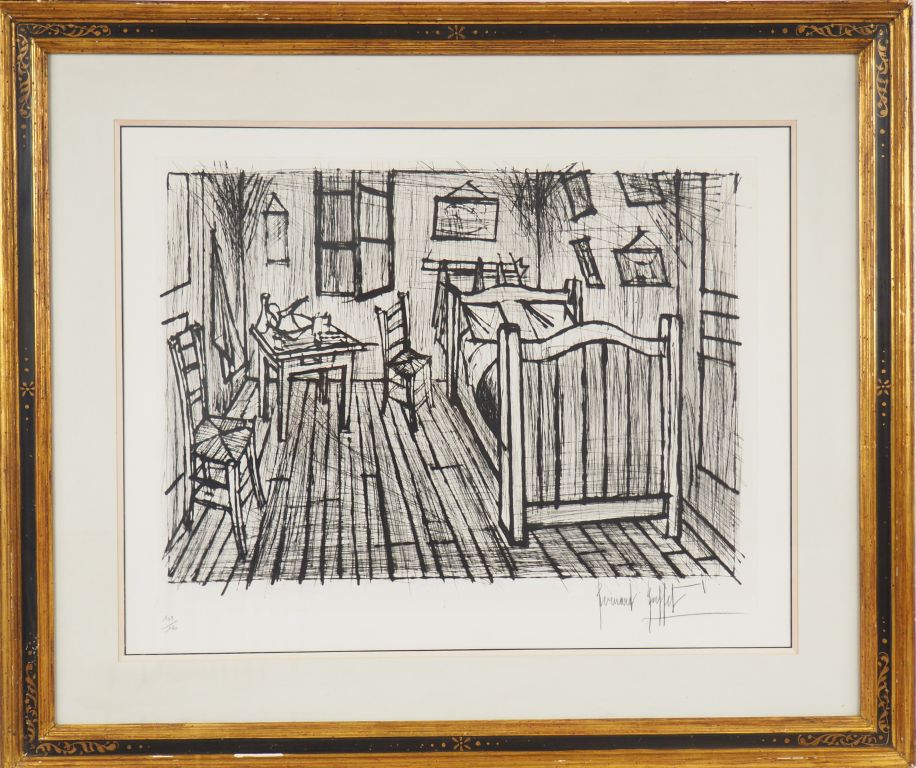 BERNARD BUFFET "La chalmbre de Van Gogh". Lithographie en noir. Numérotée: 109/120 Signée en bas à droite. Dim à vue: 47 x 62 cm.