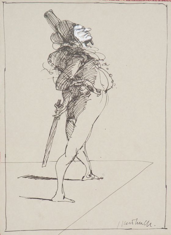 CLAUDE WEISBUCH. "Etude de polichinelle". Dessin à l'encre de Chine, rehaussé. Dim. à vue: 29 x 21 cm.