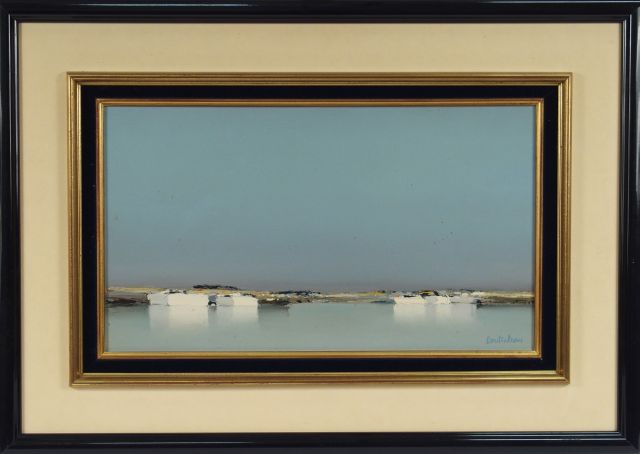 DOUTRELEAU, "Marine". Huile sur toile signée en bas à droite. Dim. : 27 x 36 cm.