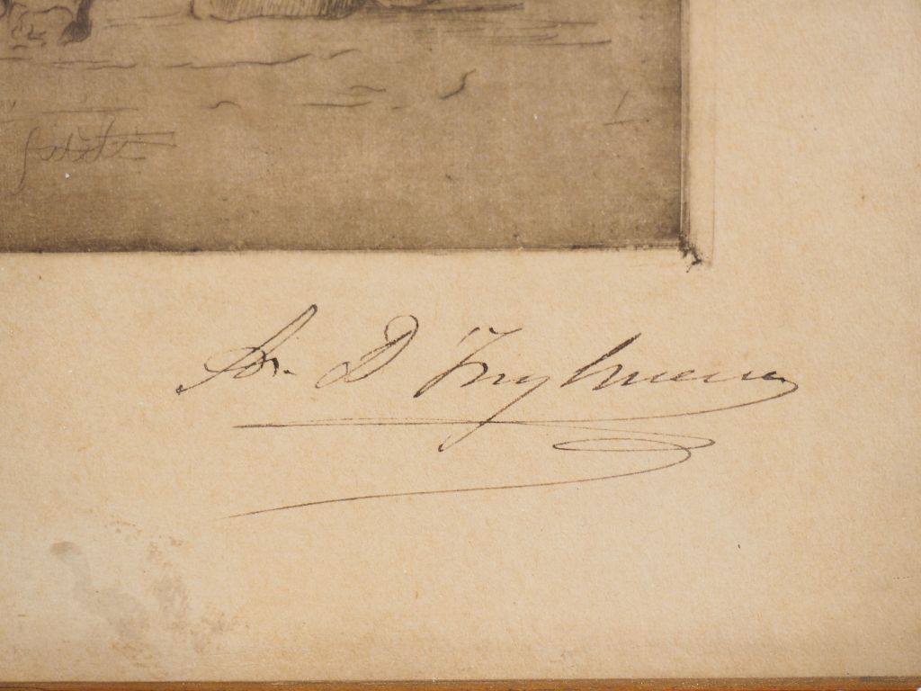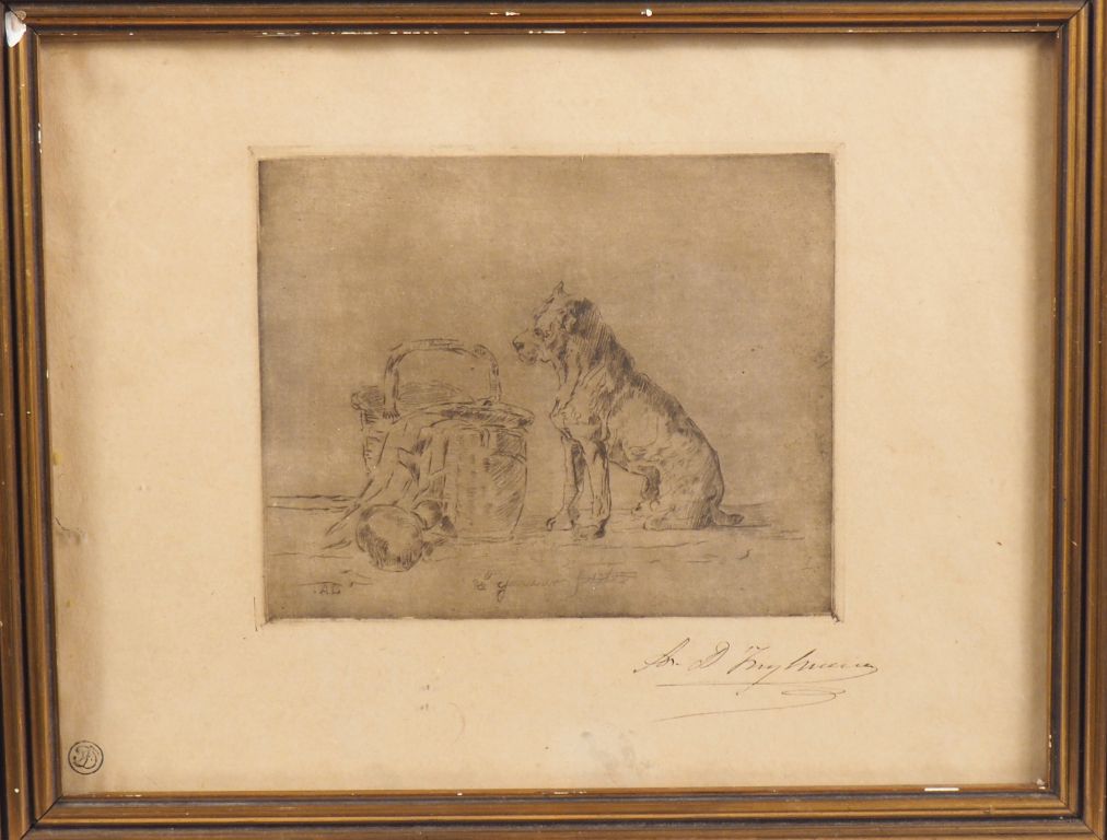 Lot de Ecole française XXème. "le gardien fidèle" Eau-forte signée en bas à d au prix de 5 à 15 € en vente aux enchères par l'hôtel des ventes Primardeco