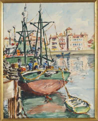 Ecole française XXème "Port du Midi". Aquarelle 35 x 28 cm