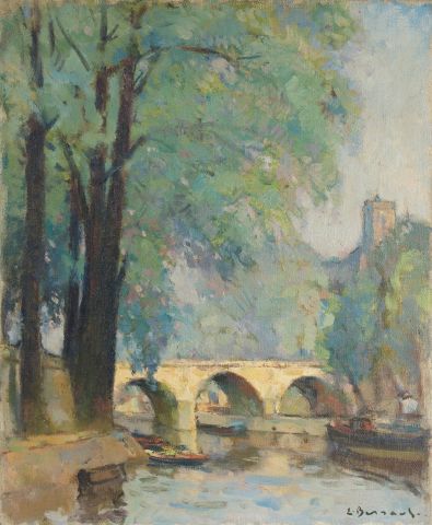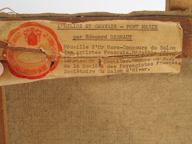 Edouard BERNAUT, "L'église Saint Gervais-Pont Marie". Huile sur toile. Signée en bas à droite. Dim. : 46 x 38 cm