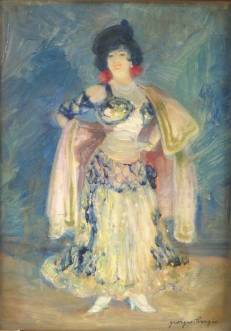 G. BERGES, "Lola à Paris". Huile sur panneau d'acajou. Signée en bas à droite. Dim. : 22 x 16 cm