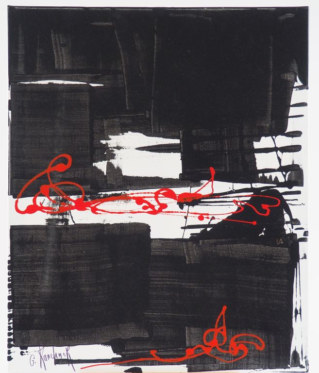 G. KARCHNER. "Calligraphie". Huile sur toile, signée en bas à gauche. Dim. 72,5 x 59,5 cm.