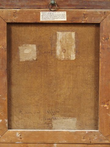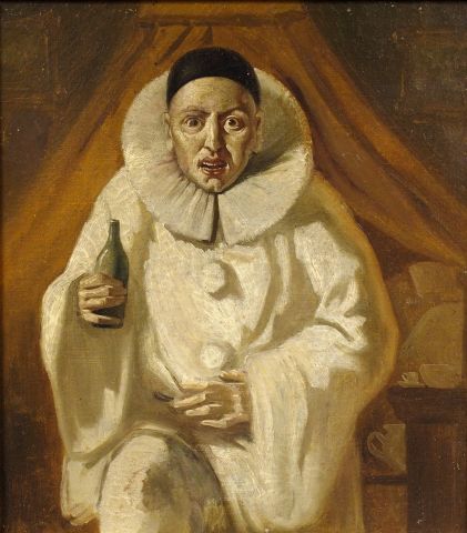 HAYETTE, "Pierrot". Huile sur toile (petites restaurations). Signée au dos et datée 1878. Dim. : 37 x 33 cm