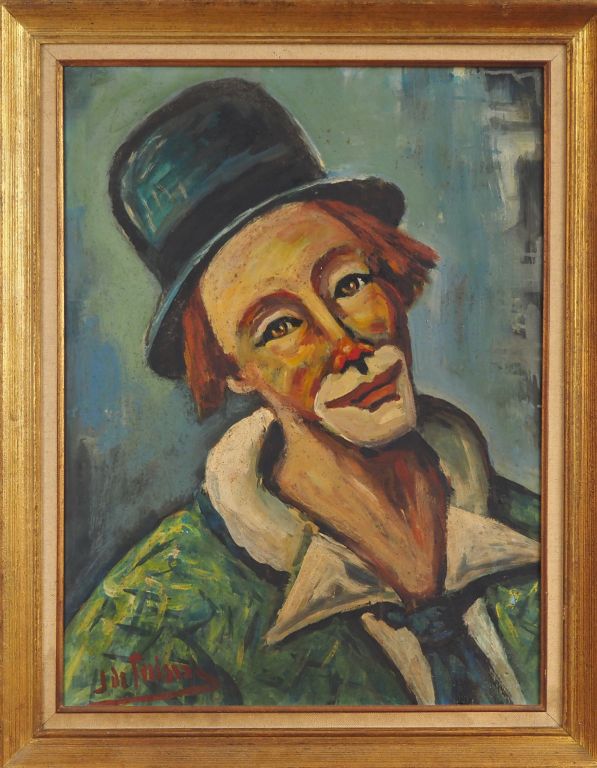 J. DE PREISSAC. "le clown" Huile sur panneau, signée en bas à gauche. Dim. 60,5 x 46,5 cm