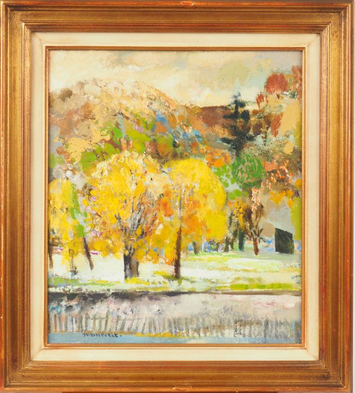 JACQUES PETIT. "Automne à Poisat". Huile sur panneau. Signée en bas à gauche. Dim: 45,5 x 39 cm.