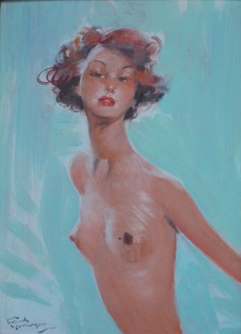 Jean-Gabriel DOMERGUE (1889-1962), "Christiane". Huile sur isorel. Signée en bas à gauche. Titrée au dos. Dim. : 33 x 25 cm