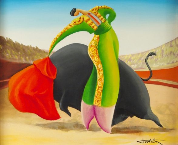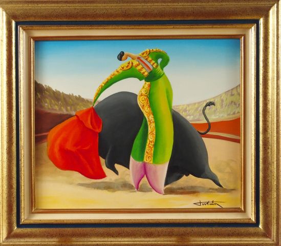 Jean-Louis TOUTAIN "Scène de corrida". Huile sur toile. Signée en bas à droite. 37 x 46 cm