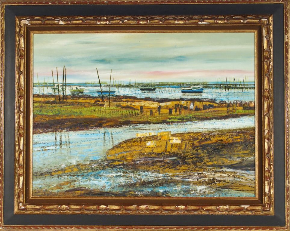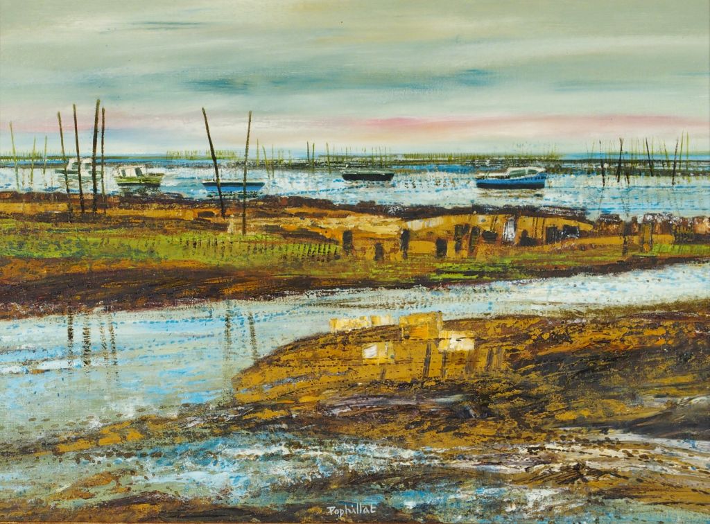 Jean-Pierre POPHILLAT. "Les marais". Huile sur toile, signée en bas. Dim. 54.5 x 73 cm