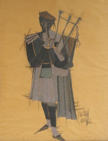 Joachim SAURA "Galicien en costume traditionnel". Gouache sur papier, signée en bas à droite et datée 66. 63 x 49 cm.