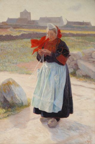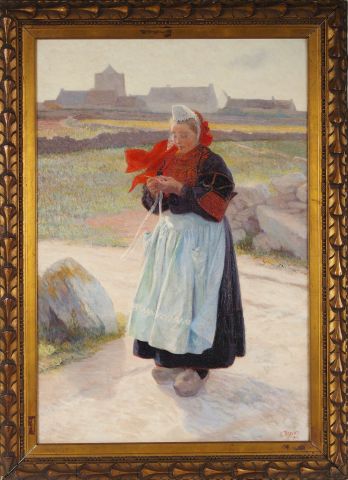 L. TESSON "La bretonne". Huile sur toile, signée en bas à droite et datée 1910. 81 x 54 cm