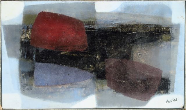 Marcel PISTRE ( 1917-1979 ) "Composition" Huile sur panneau, signée en bas à droite. 16 x 27 cm