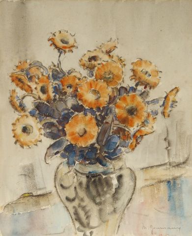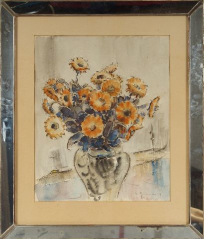 Maurice JOURNAUX, "Bouquet de fleurs dans un vase". Aquarelle, signée en bas à droite. Dim. : 42,5 x 34,5 cm.