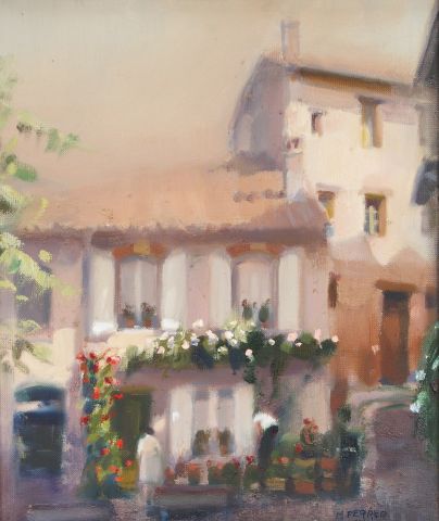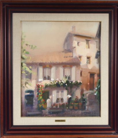 MILAGROS FERRER, "Rincon apacible". Huile sur toile signée en bas à droite. Dim. : 55 x 46 cm.