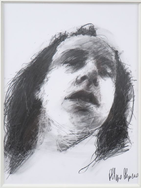 Philippe PASQUA (Né en 1965) "Autoportrait" Technique mixte sur papier. Signée en bas à droite. dimensions à vue 37 x 27.5 cm Experts : Frédérick Chanoit et Pauline Chanoit