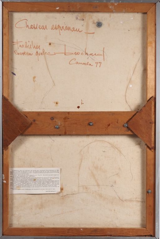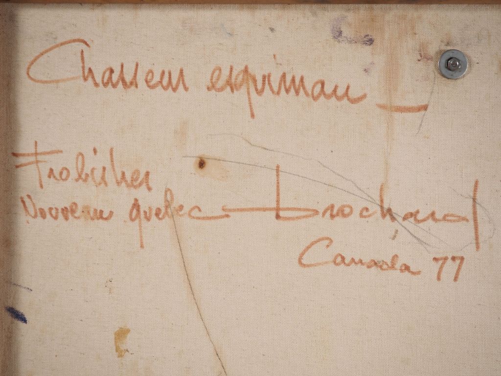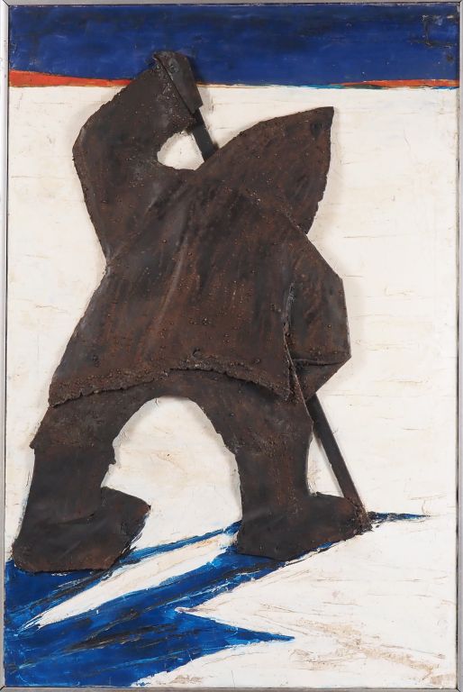 René BROCHARD. "le chasseur esquimau" Huile sur toile et métal découpé, signée au dos et datée 1977 Dim. 90 x 58 cm