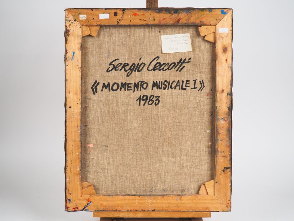 Sergio CECCOTTI. "'Momenta Musicale" Huile sur toile, signée en bas à gauche et datée 83. Dim. 55 x 45 cm