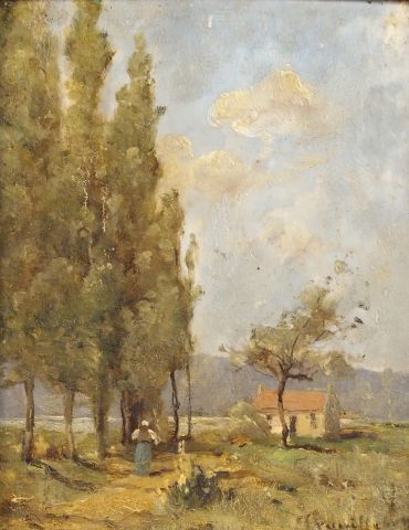 TROUILLEBERT, "Sentier au bord de la Loire". Huile sur panneau. Signée en bas à droite. Dim. : 24 x 19 cm