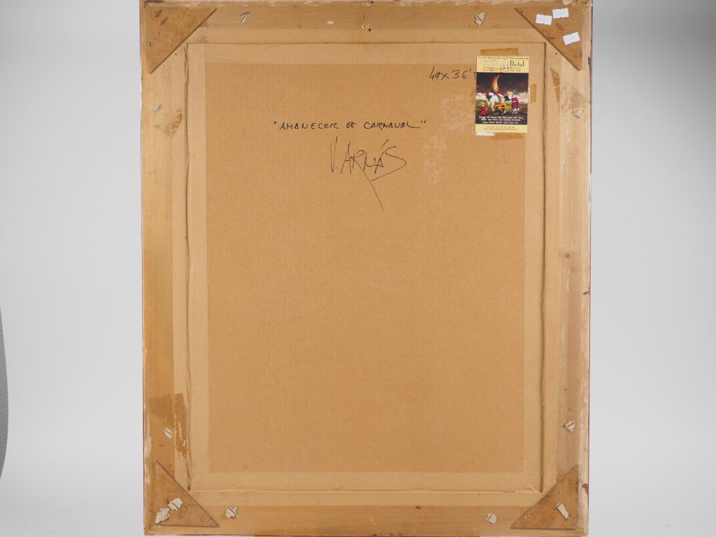 V. ARNAS. "Amanecer de carnaval" Technique mixte signée en bas à droite Dim. 49 x 36,5 cm