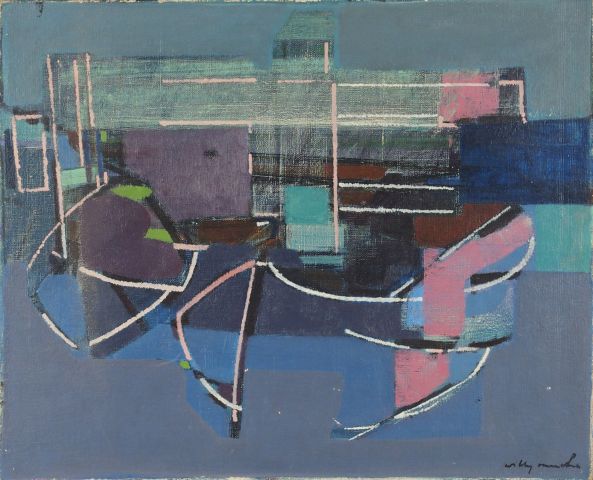Willy MUCHA "Composition abstraite". Huile sur toile, signée en bas à droite. 37 x 46 cm