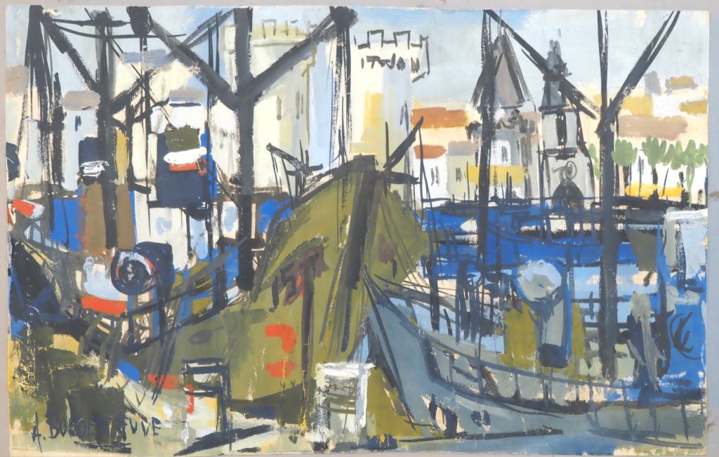 A. BORDENEUVE. "le port" Gouache, signée en bas à droite Dim. 31 x 48 cm