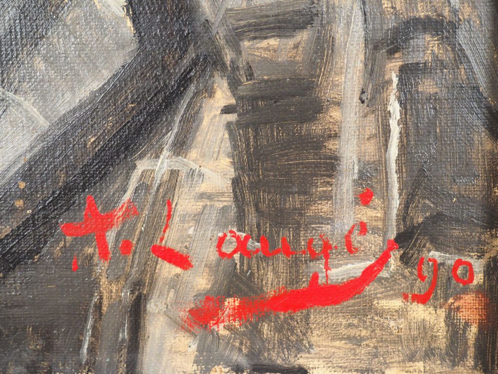 Achille LAUGÉ (1861-1944)/RC "Portrait de Jeanne Sarraut" Huile sur toile. Signée et datée 1890 Dim. 46 x 38 cm Un certificat de Madame Tamburini, spécialiste du peintre sera remis à l'acquéreur. Jeanne est la jeune soeur d'Albert Sarraut, (1872-1962), ami d’enfance de Laugé. Albert Sarraut sera vite l'une des principales figures du monde parlementaire de la IIIe République (député, sénateur radical socialiste de l 'Aude, Ministre et deux fois Président du Conseil). Au-delà de son talent politique, il fut critique d'art (préfacier d 'ouvrages sur Laugé), grand collectionneur (Cézanne, Pissarro, Dora, Gauguin, Bourdelle, Maillol, Henri Martin) et ami du marchand d'art Paul Guillaume. Laugé aura aussi exécuté un portrait d’Albert au pastel, conservé au Musée des Beaux-Arts de Carcassonne. Jeanne est ici représentée à l’âge de quatorze ans avec un profil presque parfait, sensible, ravissante et sérieuse comme tous les modèles du peintre. Le fond rouge éclatant est un héritage de la mode des portraits parisiens peints par Carolus Duran. Une succession de touches en hachures nerveuses et parallèles, gris-bleues, ocre-jaunes et rouges illuminent délicatement le visage, éclairé aussi plus classiquement par le chemisier blanc. On peut reprendre un commentaire de Nicole Tamburini, qui souligne la virtuosité du peintre dans le très intéressant catalogue de l 'exposition Achille Laugé, Portraits pointillistes, 1990 : « C'est par les effets d'ombres et les reflets de lumière, l'importance des méplats, l'exactitude des plans, la justesse des rapports que Laugé édifie l'architecture du massif facial, exactement comme il construit un paysage ». Experts : Frédérick et Pauline Chanoit